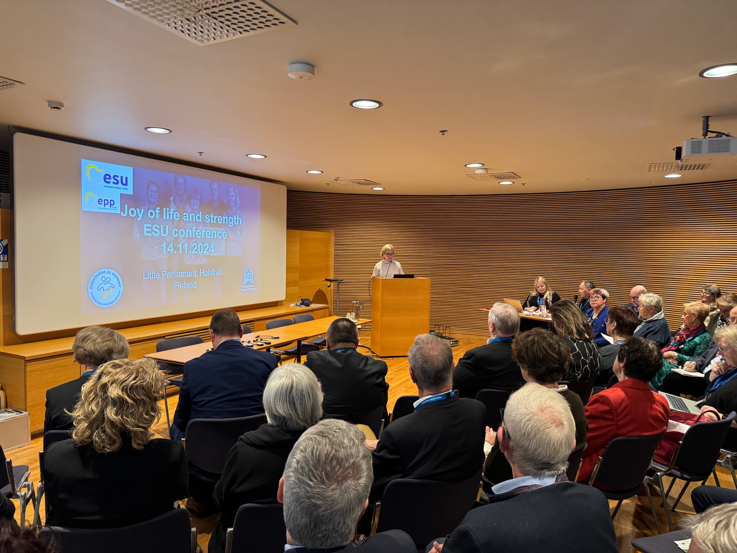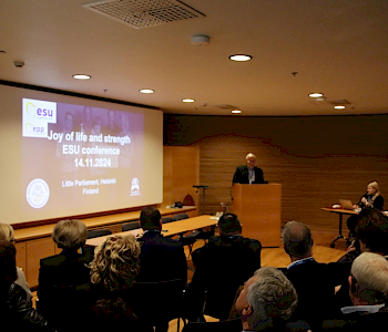 ESU Conference and meeting in Helsinki! The ESU Conference was held at the Little Parliament Visitors Centre in Helsinki. The day focused on the well-being of seniors and the impact of digitalization in Europe. The program included insightful speeches and panel discussions from experts across Europe.