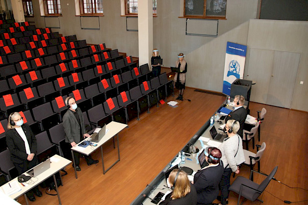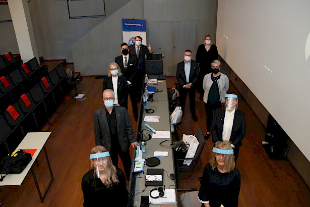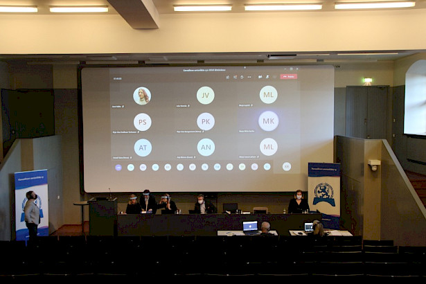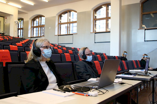 Senioriliiton historian ensimmäistä virtuaalista liittokokousta johdettiin Kansallismuseon auditoriosta käsin. Paikalla olivat puheenjohtajien lisäksi liiton toimiston työntekijät ja toiminnanjohtaja Matti Niiranen.