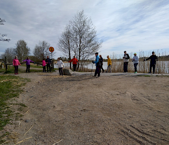 Kävelyllä pidettiin turvavälit ja mukana oli ohjeiden mukaisesti alle 10 henkilöä kerrallaan. Oheisissa kuvissa on reippailijoita eri puolilta Suomea.