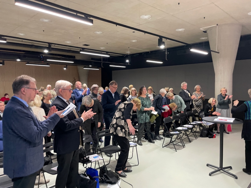 Senioriliiton monipuolinen edunvalvontapäivä järjestettiin Helsingin Kampissa. Tapahtumaan oli mahdollista osallistua Teams-sovelluksella. Paikalla Kampissa oli 70 henkilöä ja etäyhteydellä läsnä 15 henkilöä.