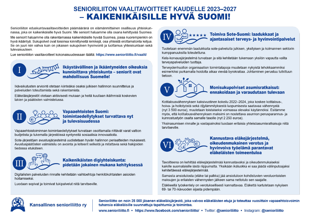 Senioriliiton eduskuntavaalitavoitteet: