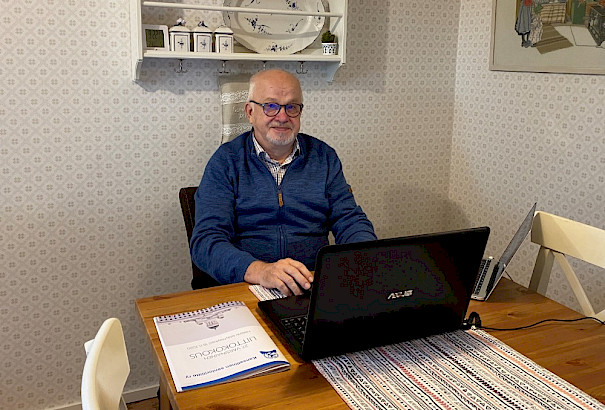 – Kotona työpöydän ääressä, asiaankuuluvasti pukeutuneena, kertoo Juhani Juvonen Ylitorniosta.