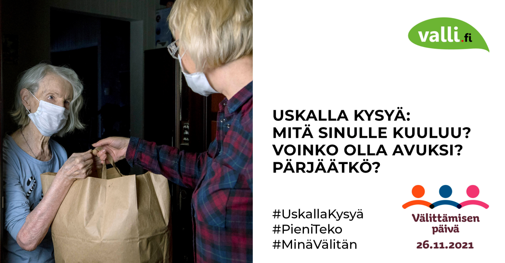 Toivotammekin kaikille hyvää Välittämisen päivää, ja kannustamme välittämään toisista ja lähiyhteisöstä vuoden jokaisena päivänä. Kuunnellaan, mitä toisella on sanottavaa, ja ymmärretään heidän tilannettaan ja tuntemuksiaan. Siitä on kannustava, rakentava ja lämmin välittäminen tehty.