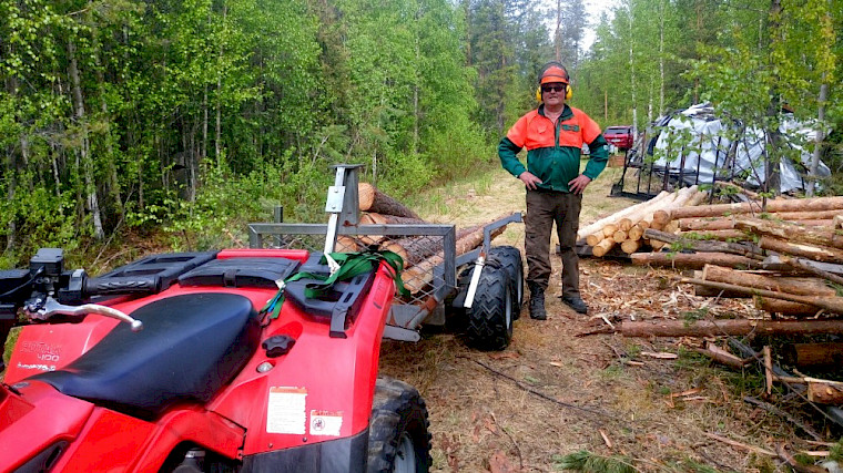 Eino Majava lähetti itsestään valokuvan metsätöissä.