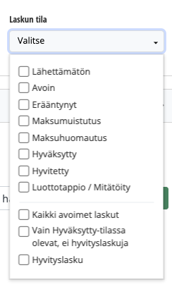 1. Mene Myyntireskontraan ja valitse laskun tila -kohdasta Kaikki avoimet laskut