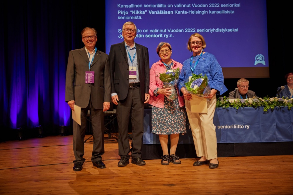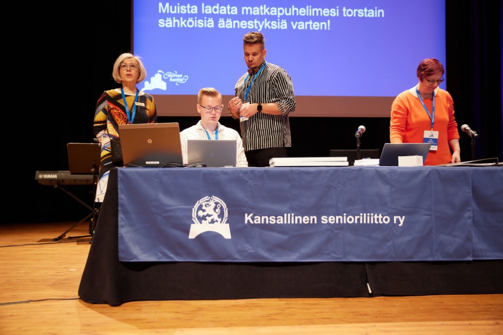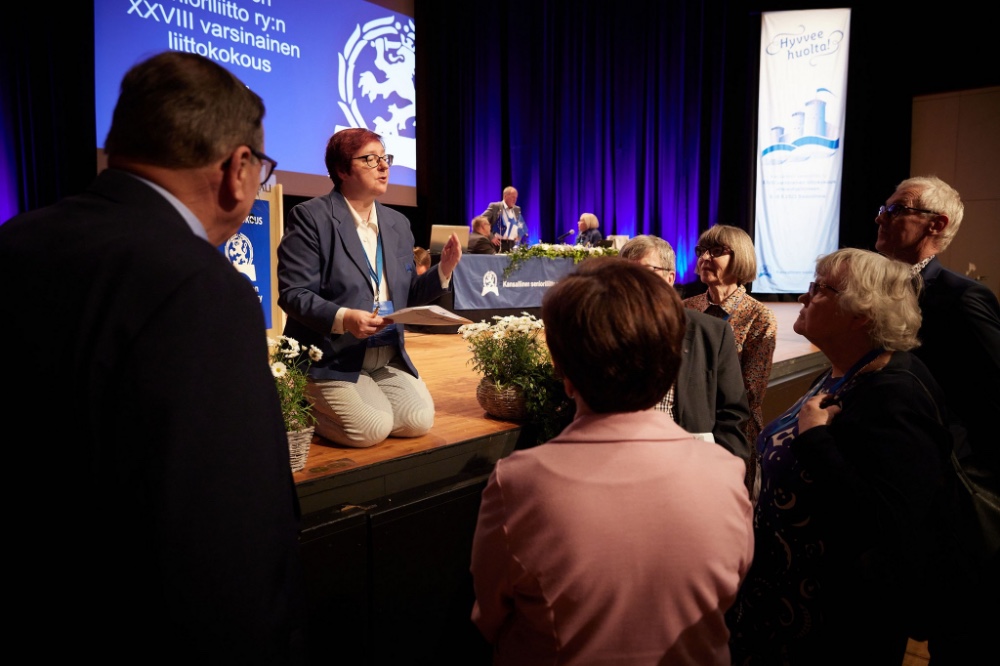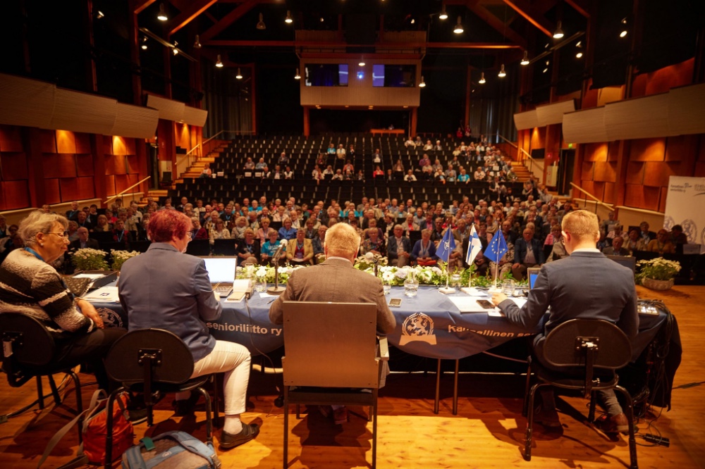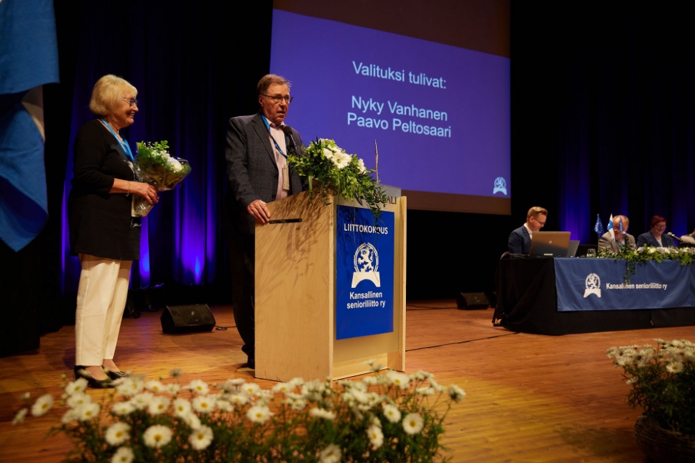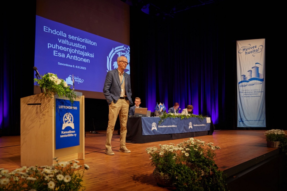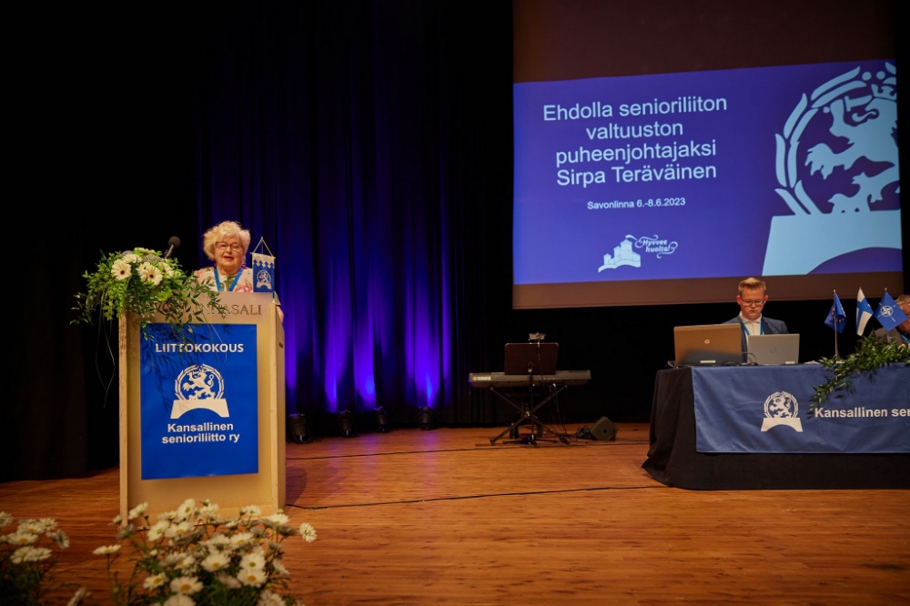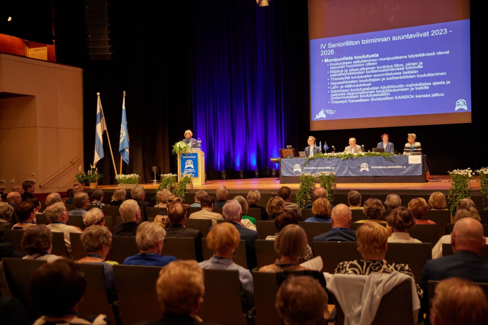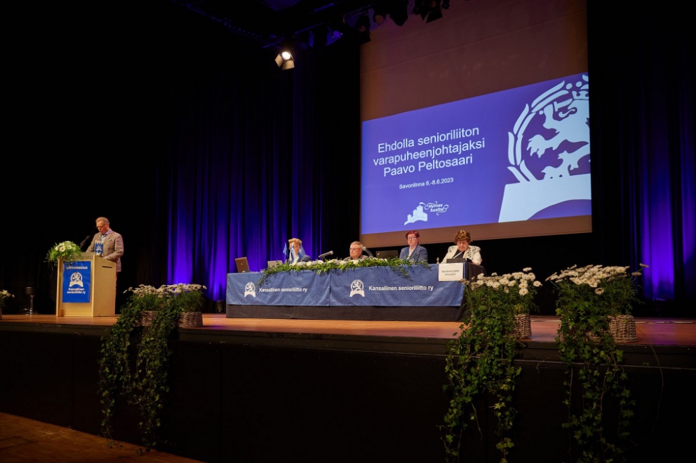 Tältä sivulta löydät valikoituja kuvia vuoden 2023 liittokokouksesta! Huomioithan, että kuvien kaikki käyttöoikeudet ovat senioriliitolla ja niiden kaupallinen ja hyvän tavan vastainen käyttö on kielletty. Mikäli kuvia julkaistaan yksityisesti uudestaan, tulee julkaisun yhteydessä mainita kuvalähde, kuvien omistaja ja valokuvaaja. Kuvat: Mikko Mäntyniemi