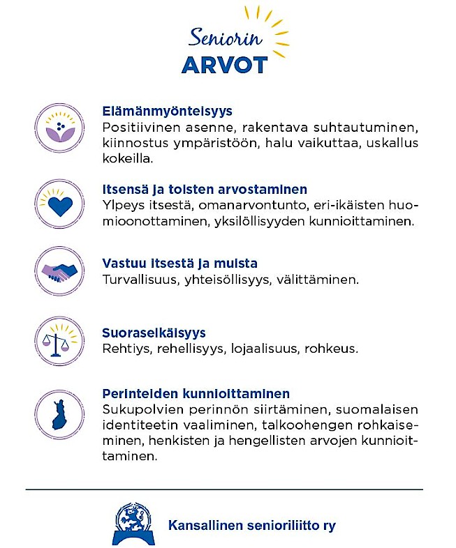 Kansallisen senioriliiton toiminta perustuu yhteisön hyväksymiin arvoihin.