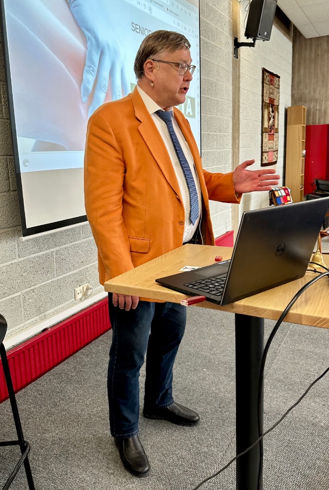 Liikuntavastaava Päivi Mecklin toi tilaisuuteen Turun kaupungin tervehdyksen ja kertoi ikääntyneiden liikuntapalveluista Turussa. Kaffepaussilla kahvittelun ohella tutustuttiin Katriinan johdolla liikuntatuotteisiin sekä seniorien hyvinvointietuihin. Lopuksi kuultiin fytoterapeutti Tapani Lahden mielenkiintoinen ja vilkkaan keskustelun virittänyt alustus teemasta "Hiljainen tulehdus ja liikunta".