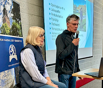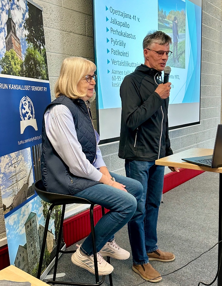 TURUN SENIORIEN HYVINVOINTI - ILTAPÄIVÄÄN kokoontui tänään runsaat 70 senioria. Ohjelmassa yhdistyksen liikuntaseniorit Katriina ja Pekka Nurmio kertoivat liikunnan merkityksestä kehon ja mielen hyvinvointiin sekä haastoivat osallistujia mukaan kokeilemaan senioreille sopivia ulkoilu- ja liikunta-aktiviteetteja.