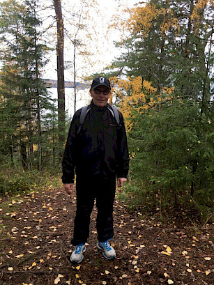 Erkki Virtasen ystävä otti hänestä kuvan Salpausselän hiljaisuuden polulla.