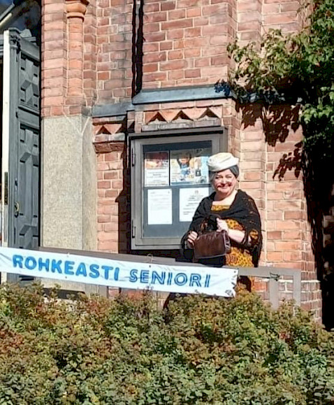 Kuvassa Jyväskylän Ylämummo menossa Kaupunginkirkkoon.