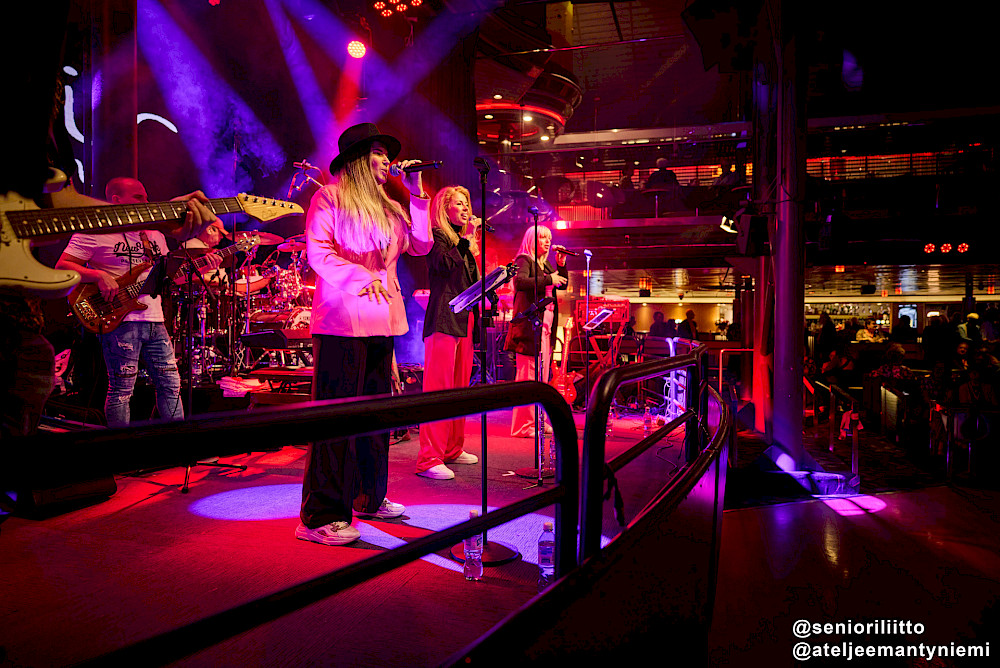 Risteilymme ohjelma oli hyvin korkeatasoinen ja erityisesti viihdyttävä: avajaiskonserteissa pääsimme kuulemaan Jorma Uotista, Helena Lindgreniä ja Trio Avecia. Mummodisco tansitti meitä yhdessä hurmaavan näyttelijä ja koomikko Minna Kivelän kanssa. Päivätansseista pitävät pääsivtä pyörähtelemään tangokuningatar Heidi Pakarisen sekä muusikkojen Veli Matti Frimanin ja Simo Taipaluksen johdolla.